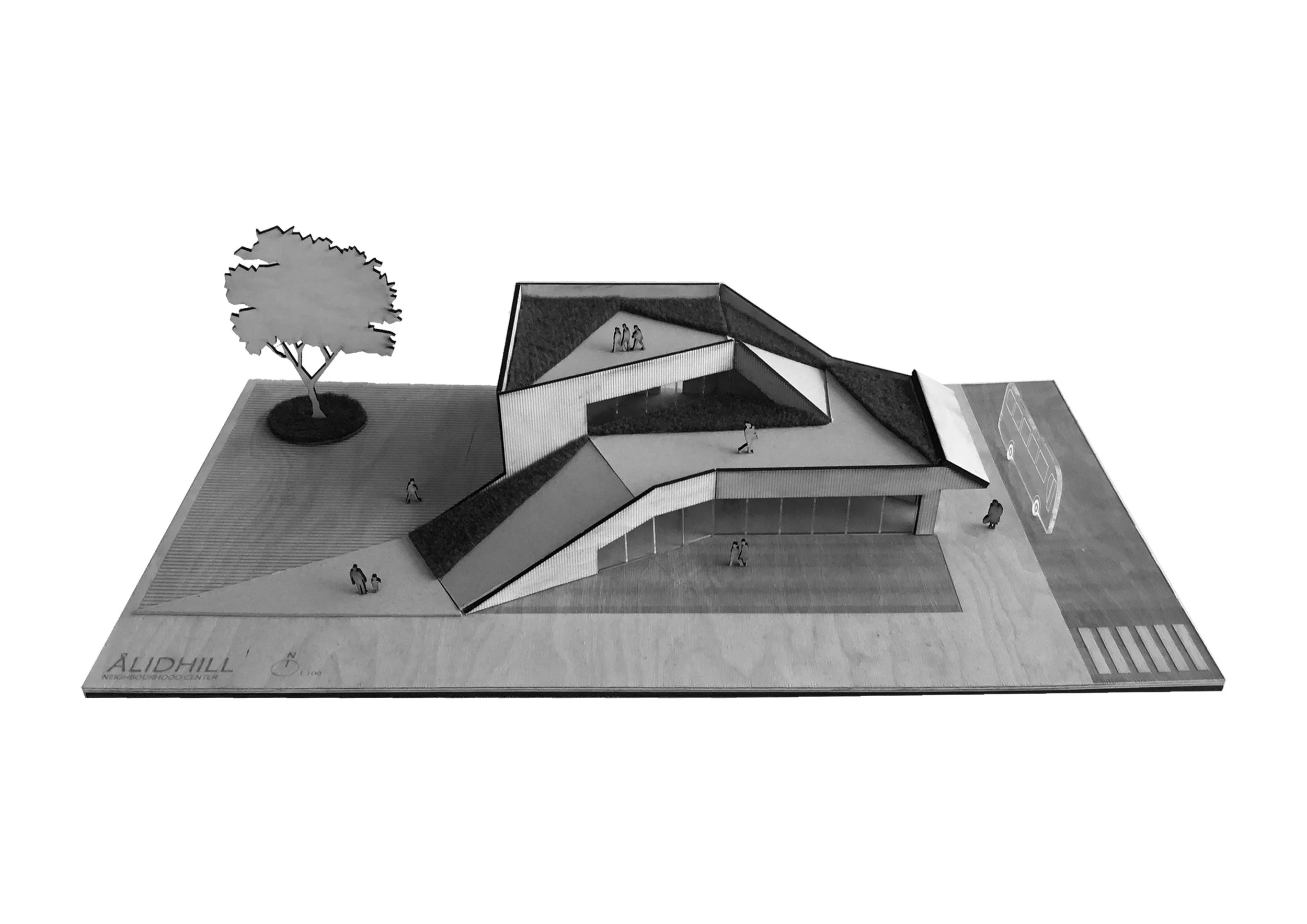 Bachelor Project designed in 2018 at Umeå University. Ålidhill cultural center was designed with the intention to create a new entrance and arrival point in Ålidhem municipality. With a focus on learning and cultural exchange, the building would be a center for regional democracy, news and a meeting place for local networks.